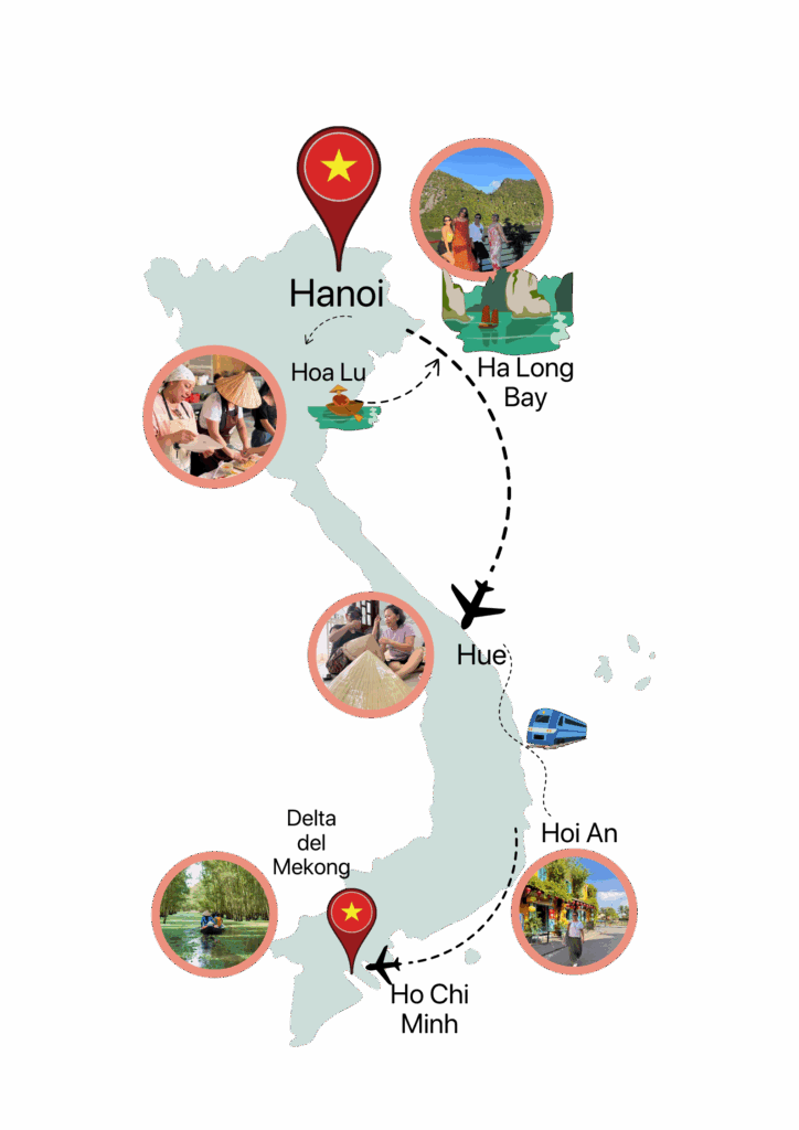 Tu aventura comienza en Hanói, una ciudad vibrante que mezcla el encanto del pasado con la energía del presente.